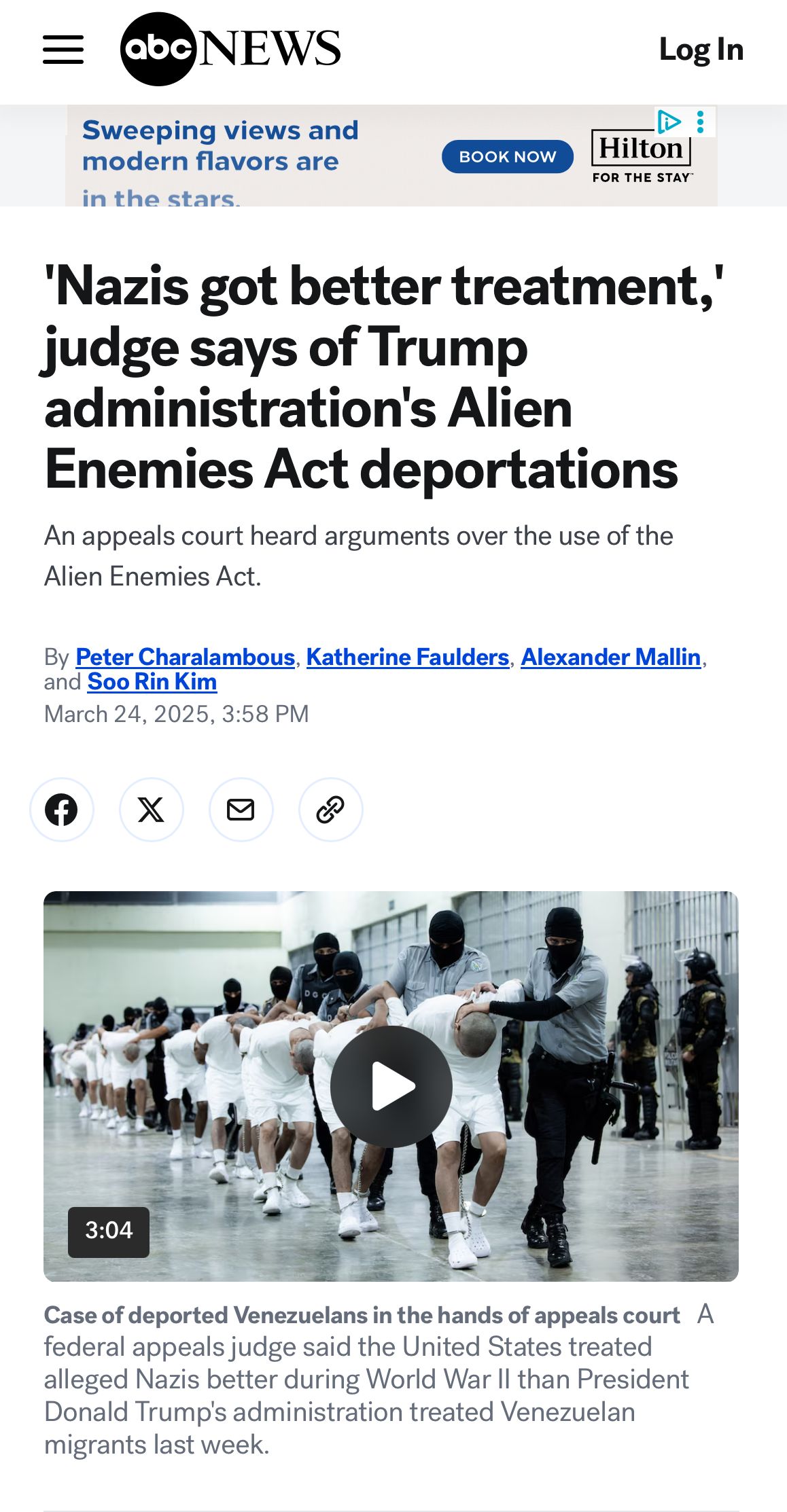 ABC News for the win this week. "'Nazis got better treatment,' judge says of Trump administration's Alien Enemies Act deportation." The subhead is "An appeals court is hearing arguments over the use of the Alien Enemies Act ."